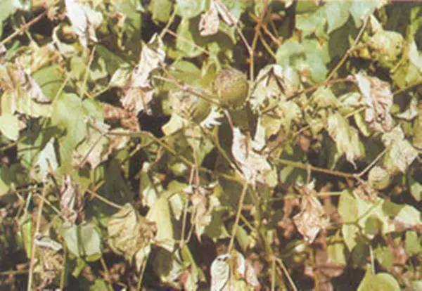 3.棉株生育期 棉花現(xiàn)蕾期后較感病,這是因?yàn)楝F(xiàn)蕾開花階段棉株抗病性降低,同時該階 段棉株易形成病菌生長所需的單糖、雙糖及氨基酸等營養(yǎng)物質(zhì)。