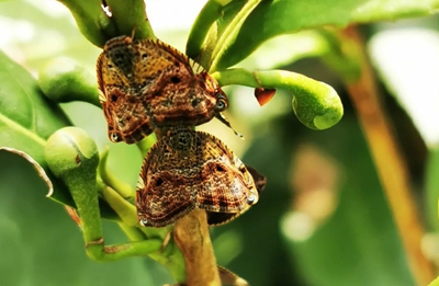 成蟲善飛翔,無趨光性,多靜伏于新梢上刺吸為害,少數(shù)則棲于葉背。且喜群居,少則2頭,多則7?8頭聚居于新梢上。成蟲壽命較長,羽化后約1個月產(chǎn)卵。